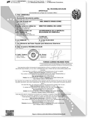 Ejemplos de documentos apostillados y legalizados